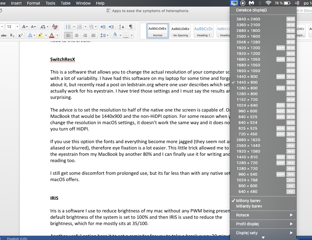 In this article I will describe a few apps I use or have used to ease the symptoms of heterophoria. I currently use MacBook pro 15in 2018 with Mojave OS, but most of these apps are also available on Windows and other OSs.